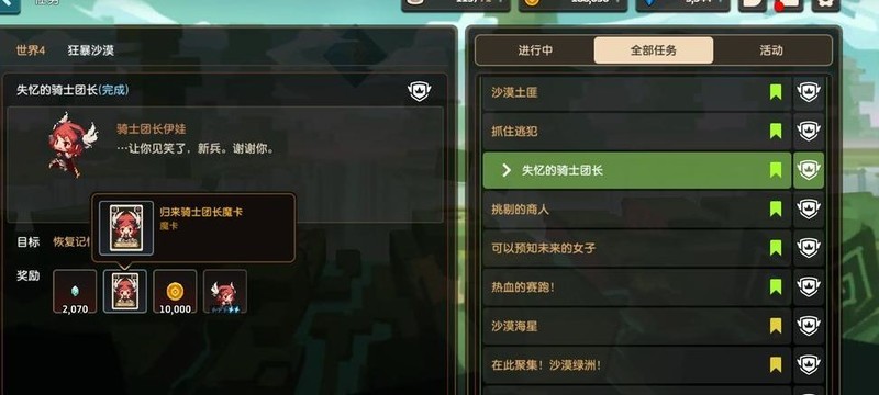 骑士团长归来,获得魔卡奖励,源自普通4-4支线失忆的骑士团长任务完成。