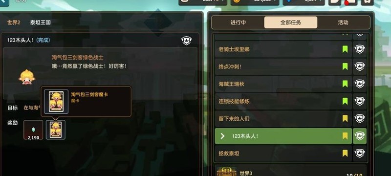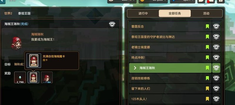 自信满满开启海贼魔卡,完成普通2-2支线海贼王瑞秋即可获得丰厚奖励。