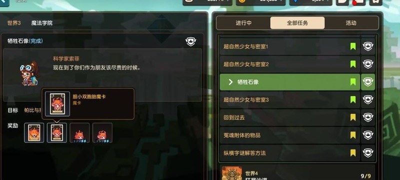 胆小双胞胎魔卡,完成普通3-3支线牺牲石像后获得的奖励。