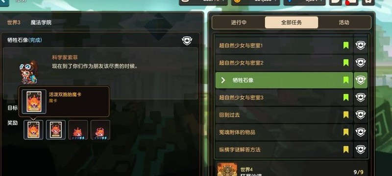 活泼双胞胎魔卡,通关普通3-3支线牺牲石像后获得的奖励道具。