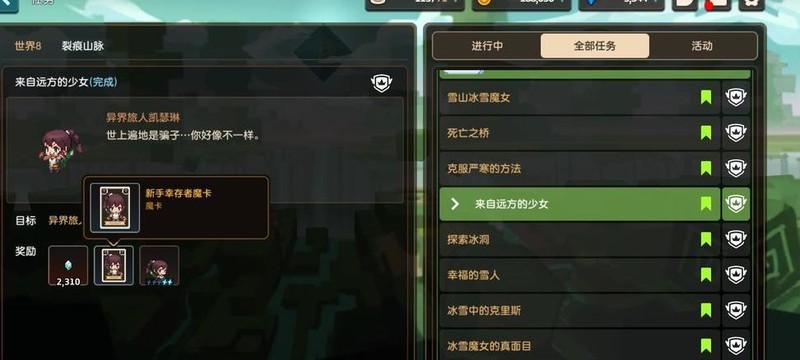 新手幸存者魔卡,完成普通8-4支线来自远方的少女后获得的奖励道具。