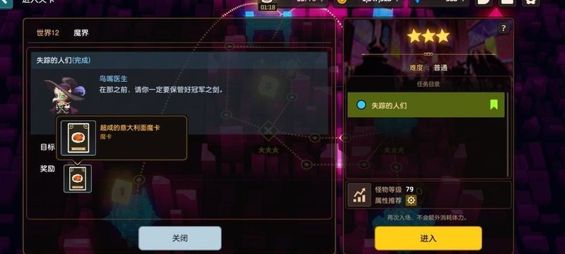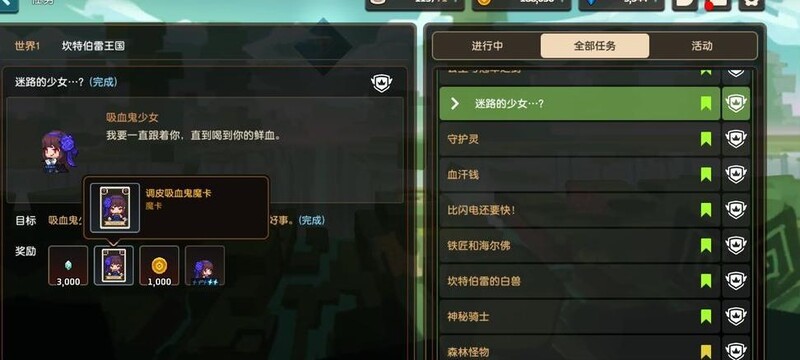 调皮吸血鬼魔卡,普通1-6支线迷路的少女?通关奖励。