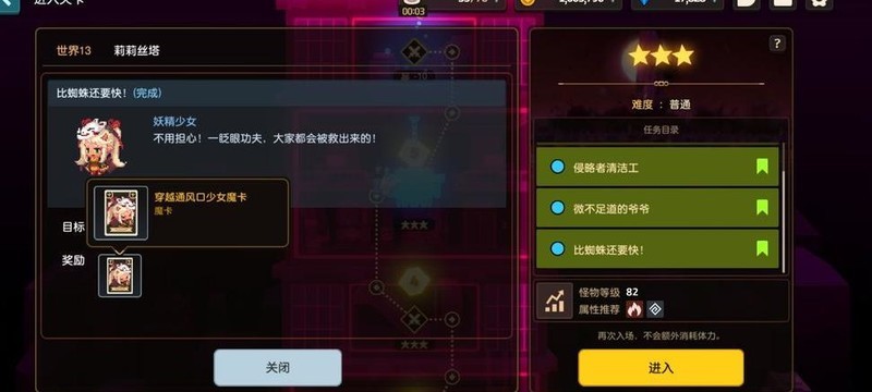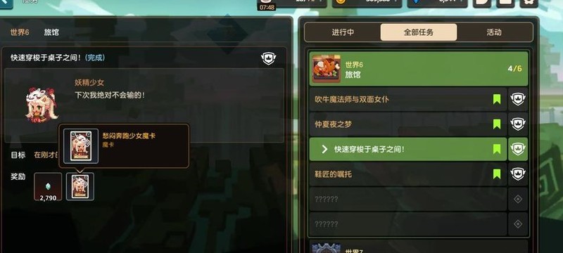 飞奔的少女魔卡,完成普通5-2支线更高、更强、更快!即可获得奖励。