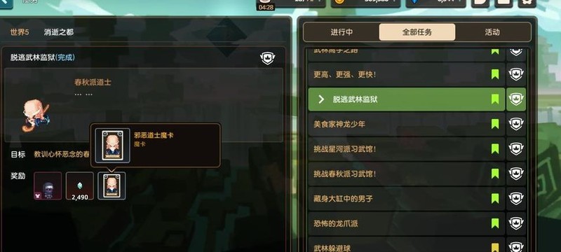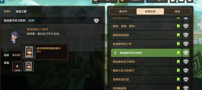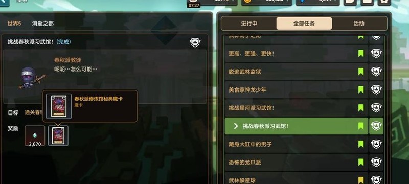 春秋派武馆秘传魔卡,完成普通5至7支线挑战春秋派习武馆!即可获得奖励。