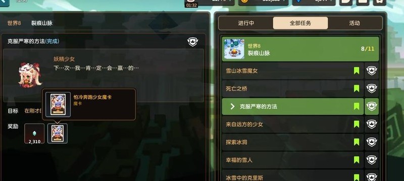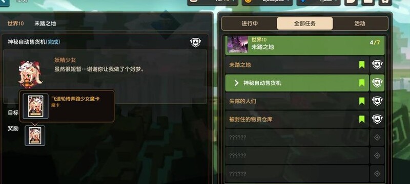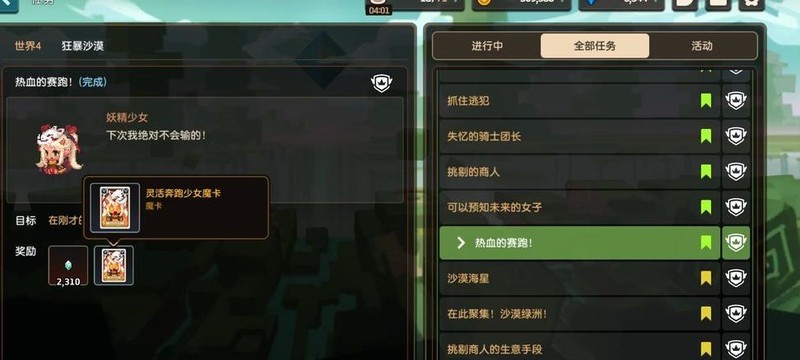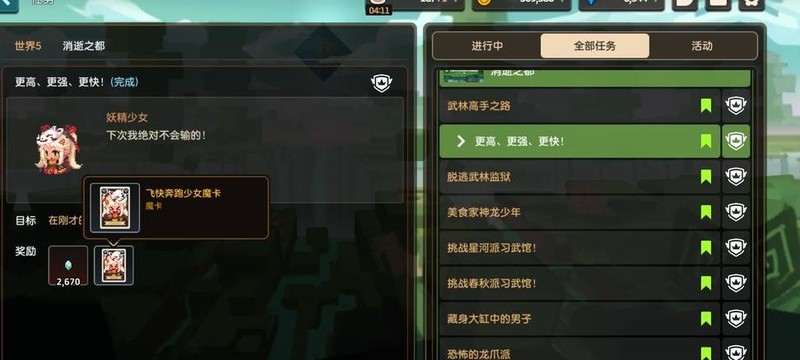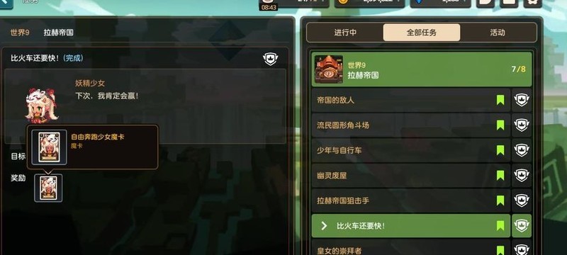 自由奔跑的少女魔卡,完成普通9-5支线比火车还要快即可获得奖励。