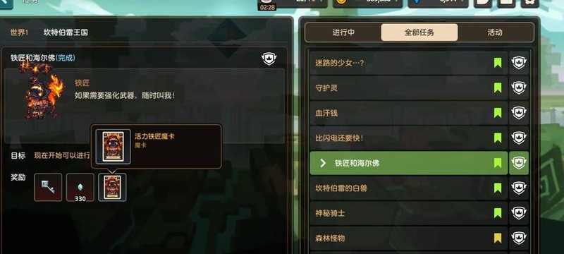 活力铁匠魔卡,完成普通1-5支线铁匠与海尔佛后获得的奖励道具。