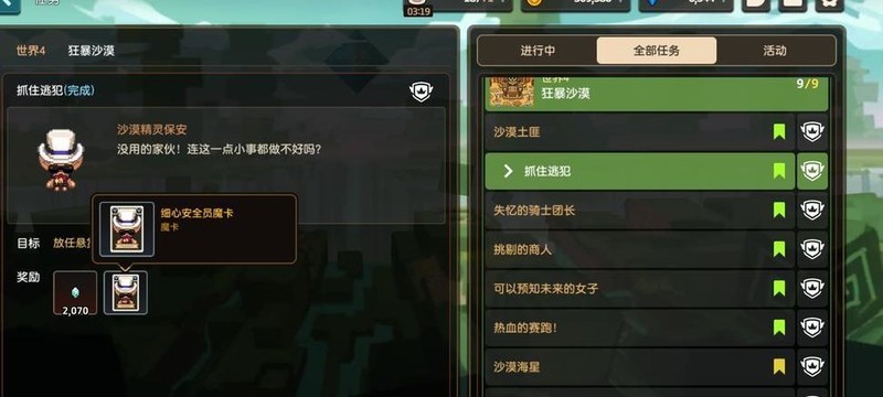 细心安全员魔卡,完成普通4-2支线抓住逃犯后获得的奖励道具。