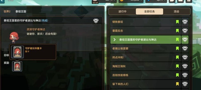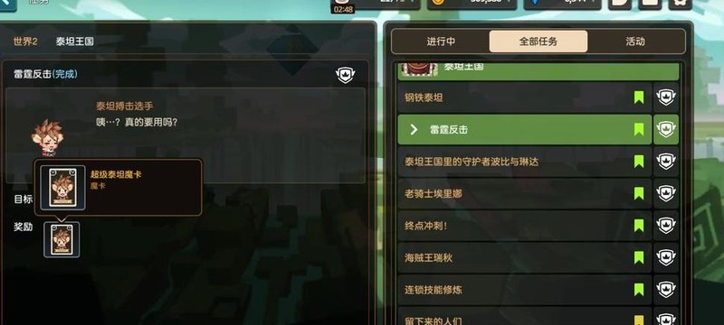 超级泰坦魔卡,完成普通2-5支线雷霆反击即可获得的奖励道具。