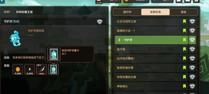 热恋守护灵魔卡,完成普通1-5支线守护灵任务可获得奖励。