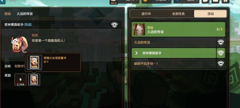 灵活奔跑的少女魔卡,完成普通4-4支线热血的赛跑!即可获得奖励。
