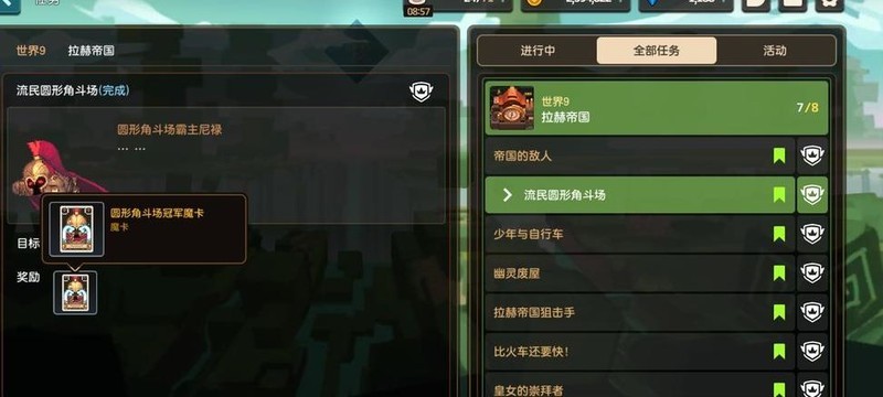 圆形角斗场冠军魔卡,完成普通9-4支线流民圆形决斗场后获得的奖励。