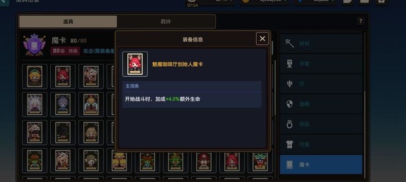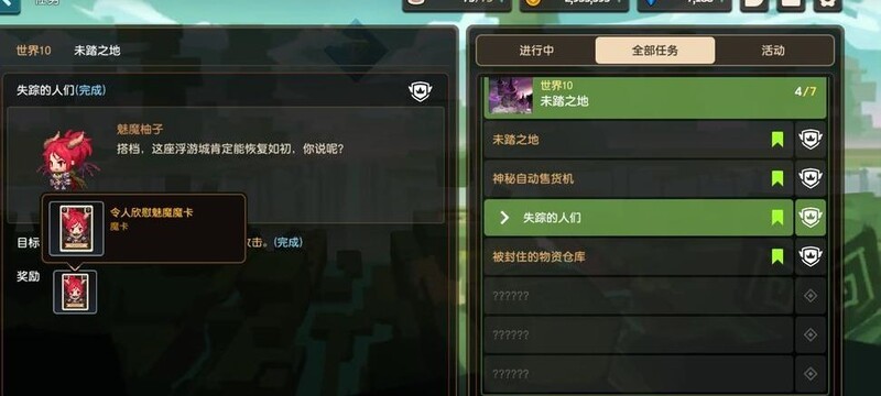 拓展事业梦魔魔卡,完成噩梦7-4支线魅魔旷工可获奖励。