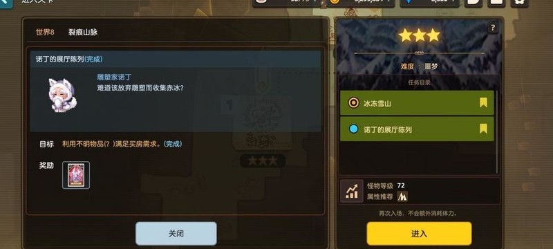 击败噩梦8-1关卡支线诺丁的展厅陈列中的雕像雪人,可获得变身魔卡奖励。