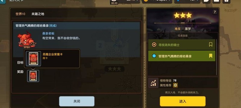 恶魔企业家魔卡,完成噩梦10-2支线管理热气腾腾的熔岩桑拿后获得的奖励。