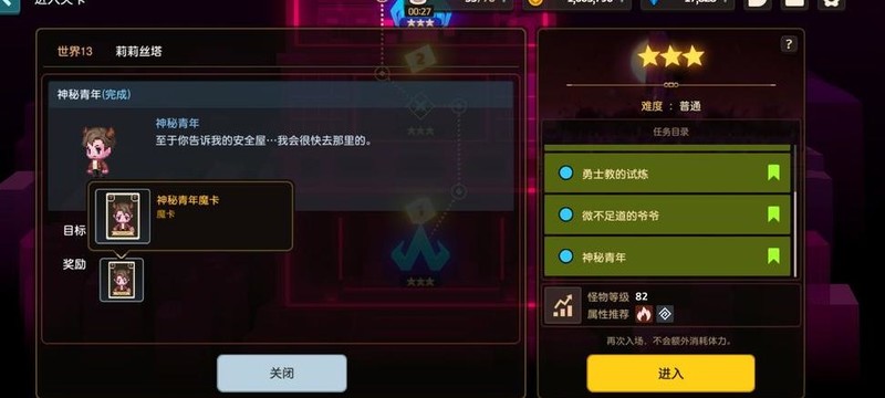 神秘青年魔卡,通关普通13-1关卡支线神秘青年后获得的奖励道具。