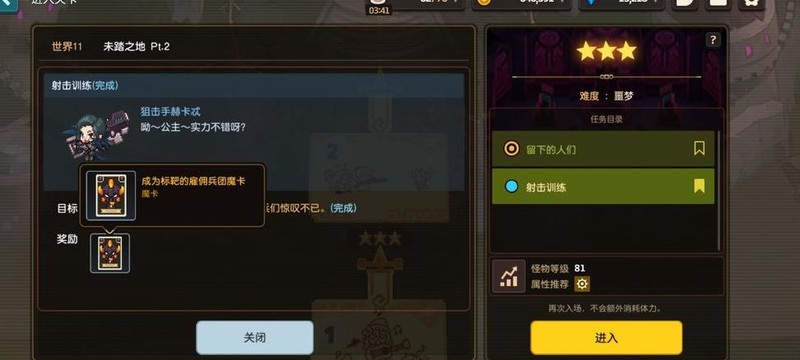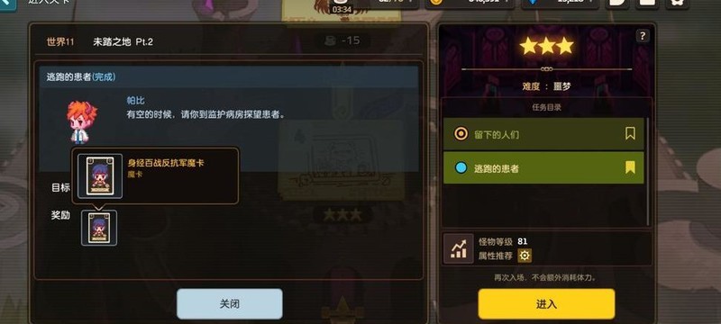 身经百战的反抗军魔卡,通关噩梦11-4支线逃跑的患者即可获得奖励。
