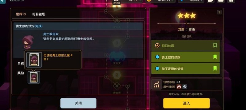 忠诚的勇士在魔卡试炼中传授信仰,信众于普通13-3关卡支线中获得奖励。