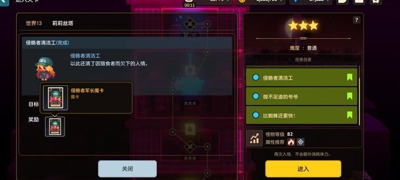 侵略者军长魔卡,通关普通13-5支线侵略者清洁工后可获得的奖励。