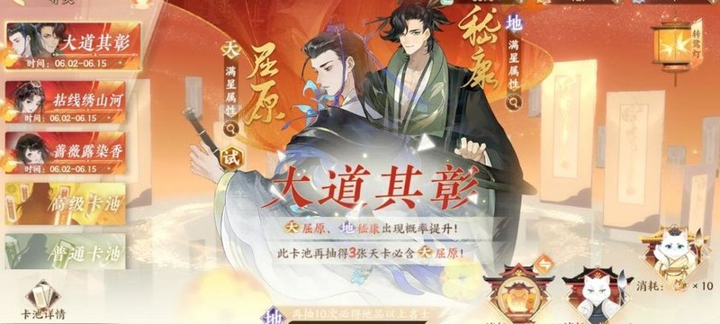 途中若有不错的感觉也可抽取,不必拘泥形式,但建议大家适当积累通宝,不要一获得就立刻使用。