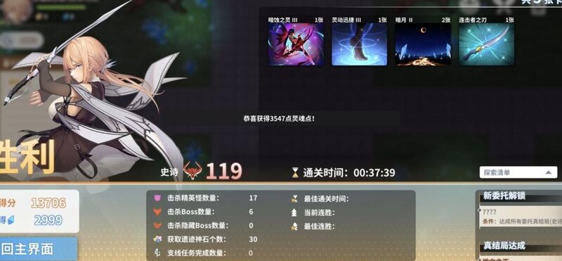 通关45号仓库后,可使用钥匙提取核心卡片与加速卡,加快成型进程。在不开启怪物反伤和血量加成的前提下,史诗模式最高可挑战79难度。由于所有战斗均为单回合秒杀,配卡方案从45级过渡至79级均可通用。伤害反弹机制在角色攻击结算后触发,若攻击直接击杀敌人,则不会受到反弹伤害。因此,在阵容初步成型阶段,可跳过中间难度,直接挑战具有满额反弹效果的99级史诗副本,借此高效获取灵魂石,快速提升角色属性,加快整体发育节奏。