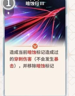 由于暗蚀增益效果无法自动消失,必须依赖敌方使用净化技能或我方动用移除类卡牌才能清除,因此在战斗后期,面对防御高、血量厚的敌人时,仅依靠暗蚀机制会显得输出不足、效果减弱。为提升持续作战能力,建议搭配具备清除暗蚀状态的卡牌,或将其转化为实际伤害。例如暗蚀爆发这张卡,可造成三倍于当前暗蚀层数的伤害,在满层时基础伤害可达300;若在暗蚀被移除时触发,则能打出500点穿刺伤害,效果更佳。然而,随着战斗进程推进,速度降低后重新叠加高层数暗蚀将变得困难。因此,推荐在高暗蚀状态下构建相应卡组,利用每层暗蚀带来的双倍回血与大量护甲加成,实现续航与防御的双重优势,从而在关键阶段保持战斗力。