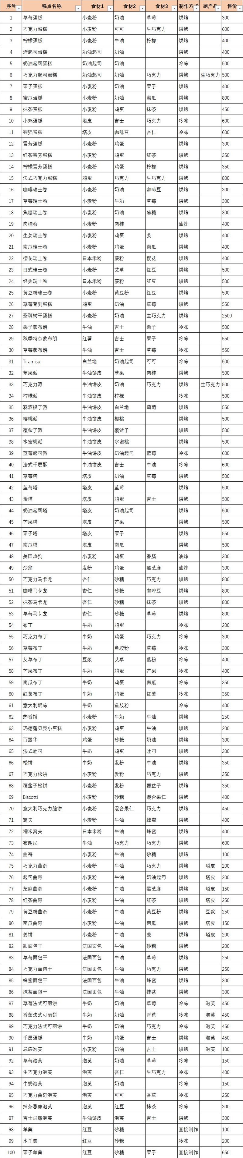 圣诞树干蛋糕价格最高,堪称食谱中的难点,建议新手优先掌握,以免后期困扰。