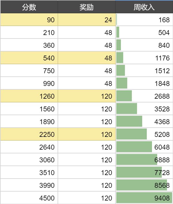 努力程度若未达平均难度15级,或提升至75级以上,其收益相对较低。