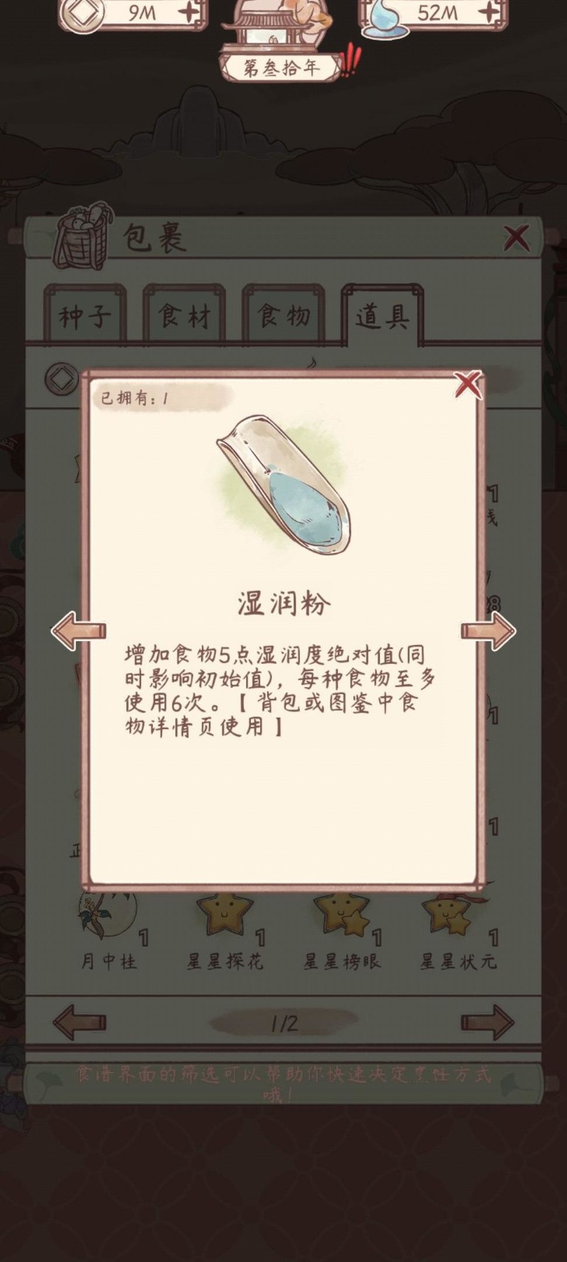 使用方法:从包裹或食物图鉴中选择一种食物进行操作,使用后将随机改变其松软度与湿润度,香味值保持不变。数值可能提升,也可能变为负数。例如蛋炒饭的湿润度原为38,使用后可能变为50或-50,效果具有不确定性。