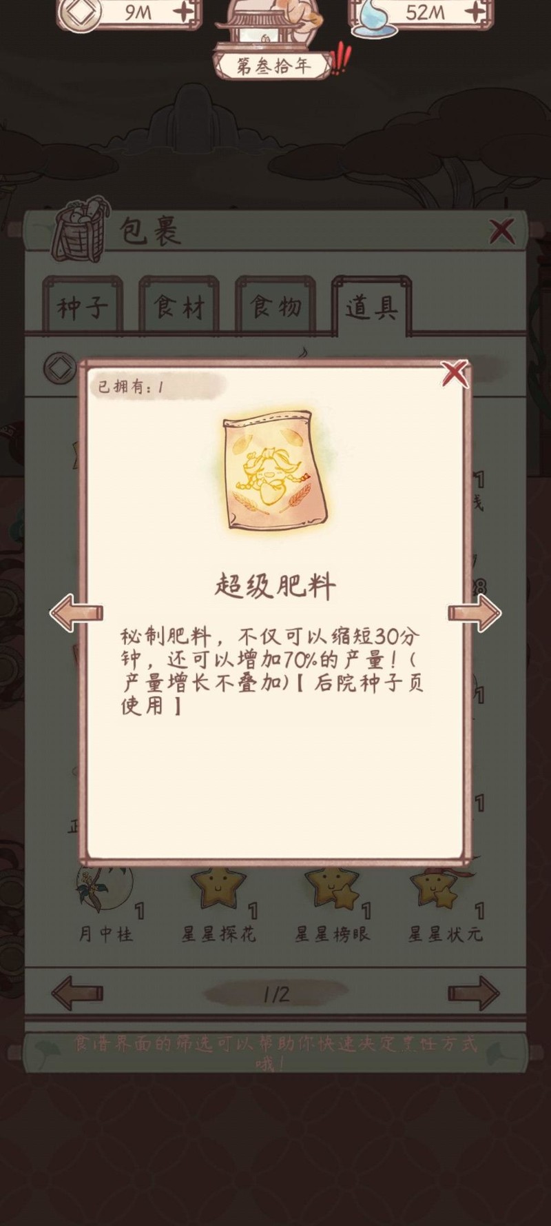 超级肥料可缩短30分钟种植时间并提升70%产量,重复使用无效,建议每轮种植仅使用一次以达到最佳效果。