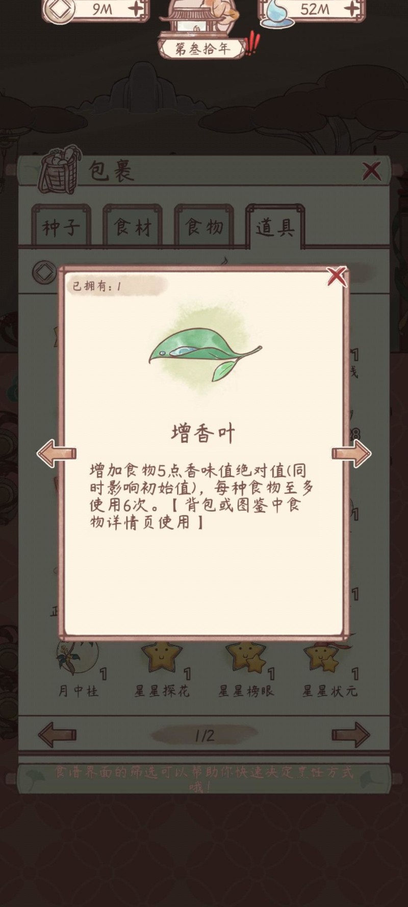 使用方法:从包裹中的食物或食物图鉴选择目标食物使用,每次可提升香味值5点,每种食物最多使用6次,推荐用于完成客房订单与信封任务。
