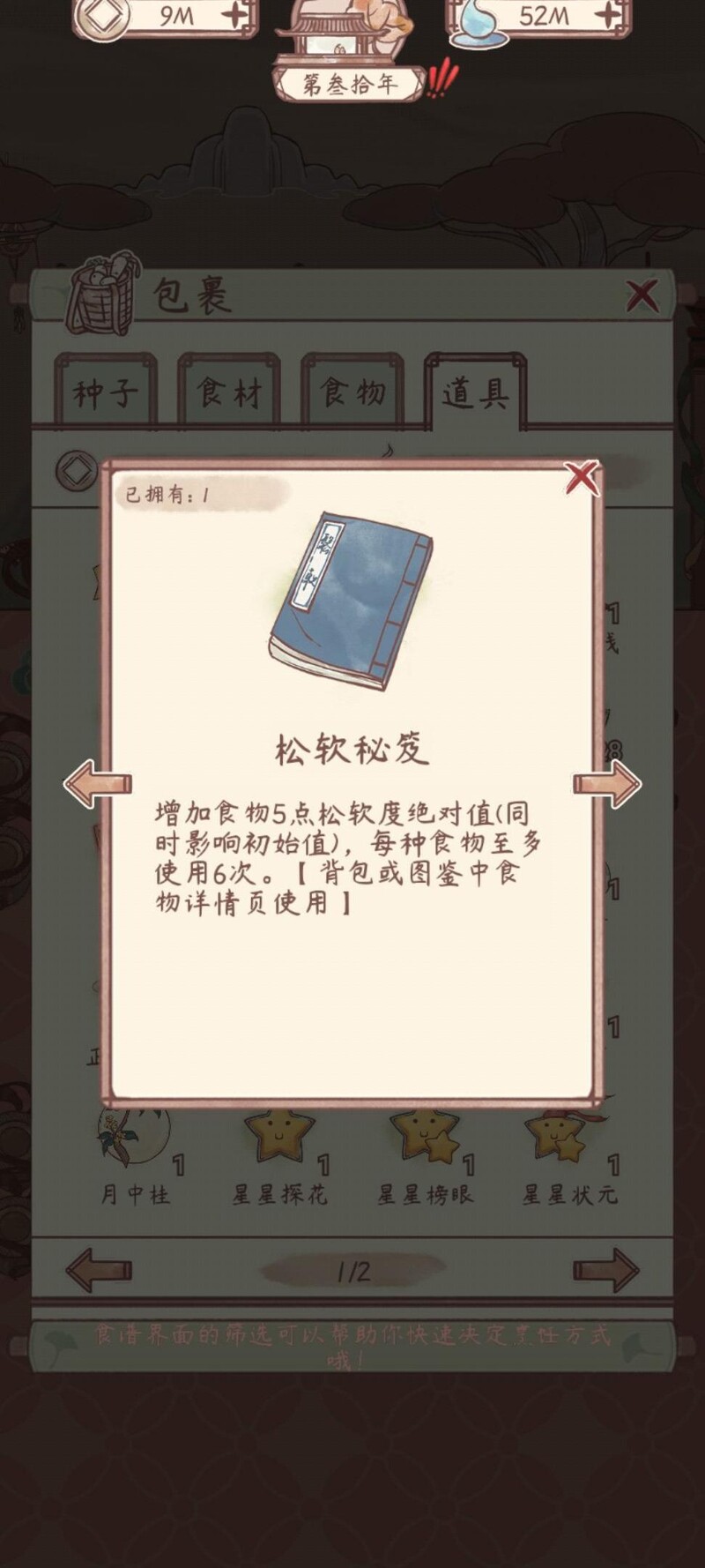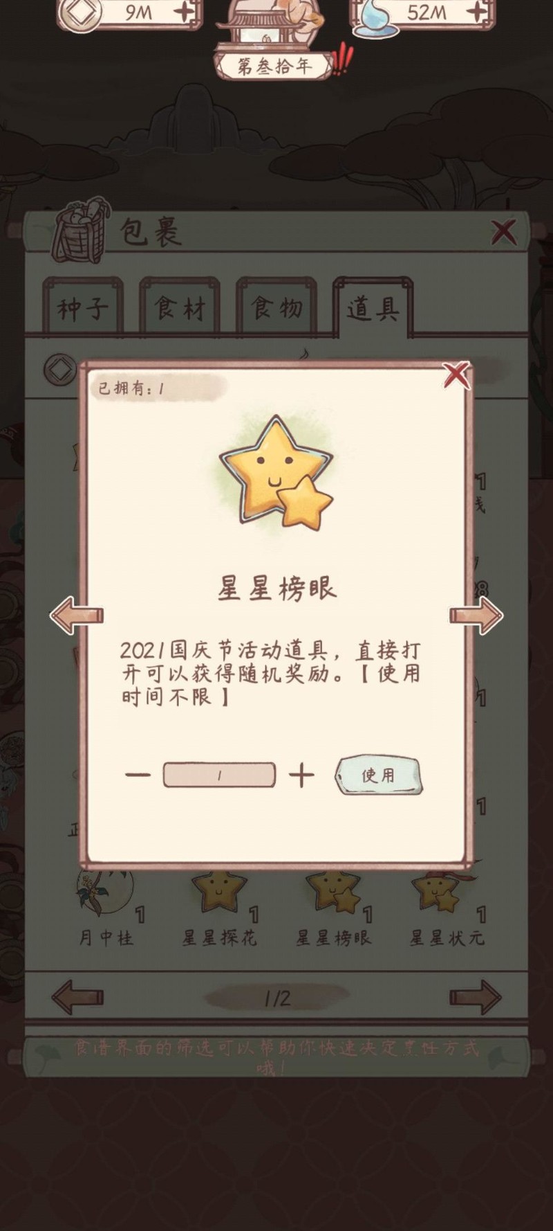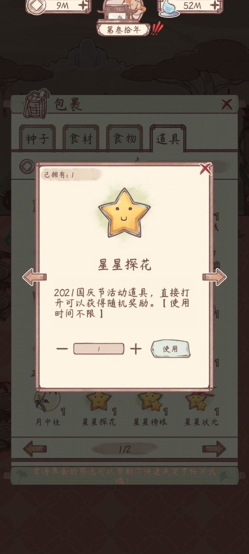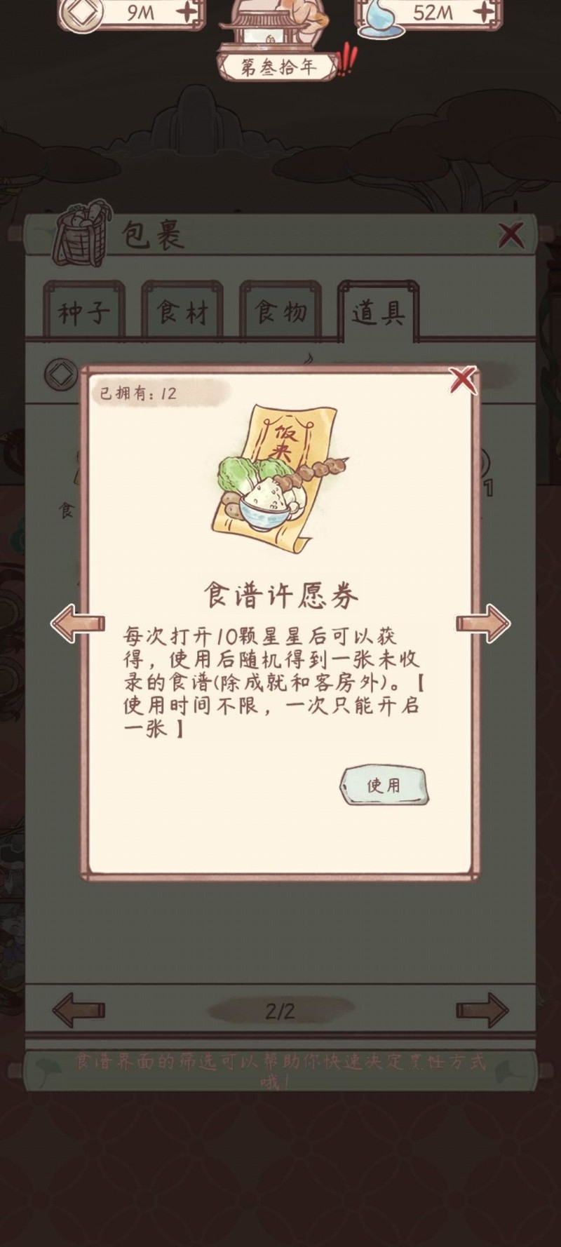 用于包裹中,开启后随机获取食材、种子等奖励物品。