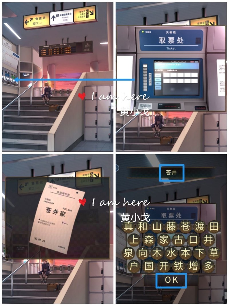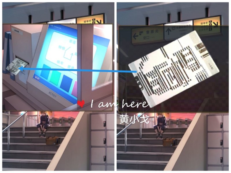 在右侧场景中,使用取票机输入目的地苍井,成功获取车票。
