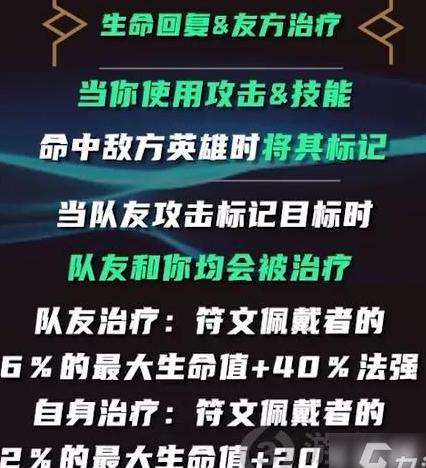 生命源泉在端游中仅为一个小符文,而在手游中升级为全新的基石符文,显著增强了治疗能力。当英雄用普攻或技能命中敌方英雄时,目标会被标记;队友攻击该标记目标时,施法者与队友均可获得治疗。每位队友对同一标记仅能触发一次完整治疗效果,后续触发则治疗量降至25%。携带该符文的英雄自身也可触发此效果,且其当前生命值越高,所获得的治疗效果越强,提升了持续作战与团队协作的能力。