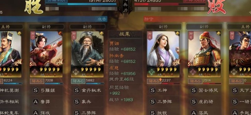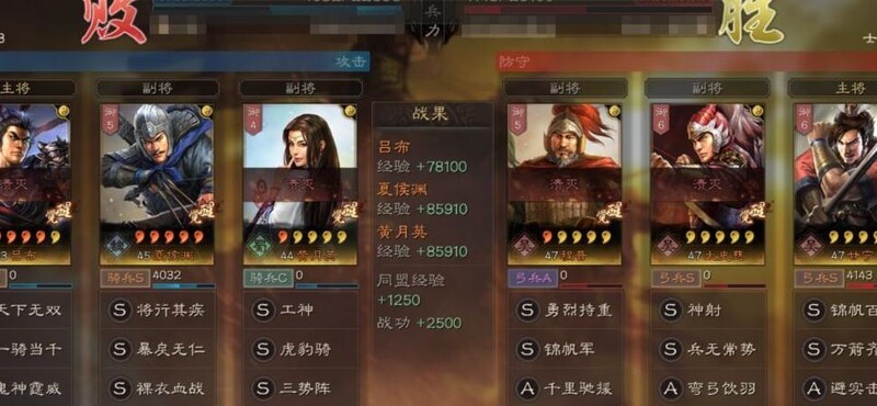 右侧由凌统替换郭嘉,为吕布提供必中效果,黄月英则因马腾的骑兵S级宝物而受益,但对实际战斗影响不大。