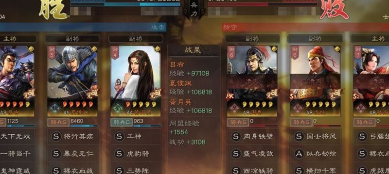 凌统作为第二输出,可考虑搭配裸衣血战与百骑或暴戾无仁,挫锐非必需,虎豹骑建议由黄月英携带。
