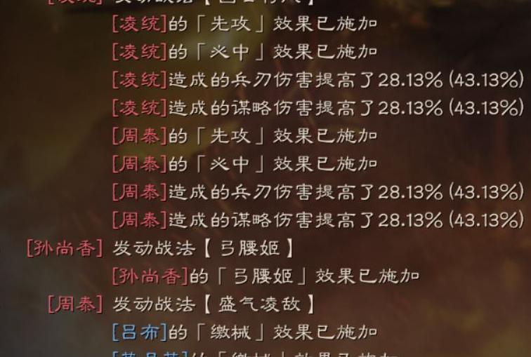 将凌统的国士之风与黄月英的工神叠加于吕布,可大幅提升其攻击力,配合得当威力惊人。