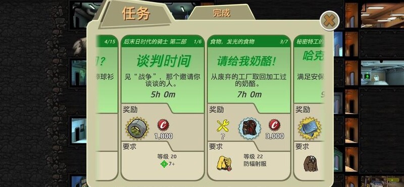 旁边三个任务有速通技巧,光头数量和废土派出只需反复派遣并召回,次数可叠加,效率更高。
