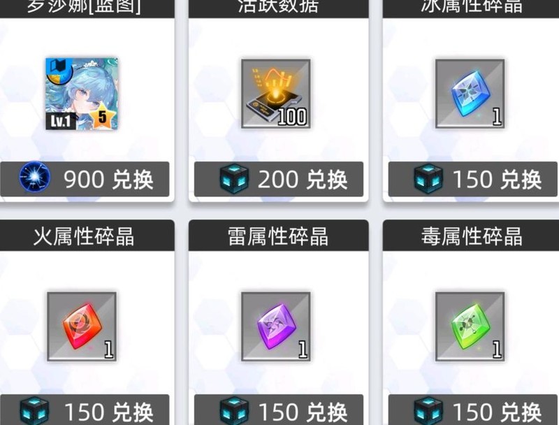 可兑换资源:五星卡牌蓝图、活跃数据、属性碎晶及皮肤等。