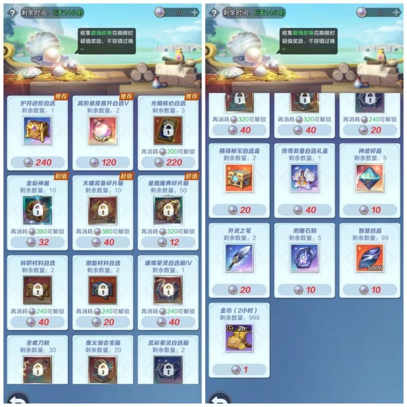 碧海珍珠可通过海洋之心寻宝获得,理想兑换比例为1:2.1,即1个海洋之心换取2.1个碧海珍珠,比例越高越划算。