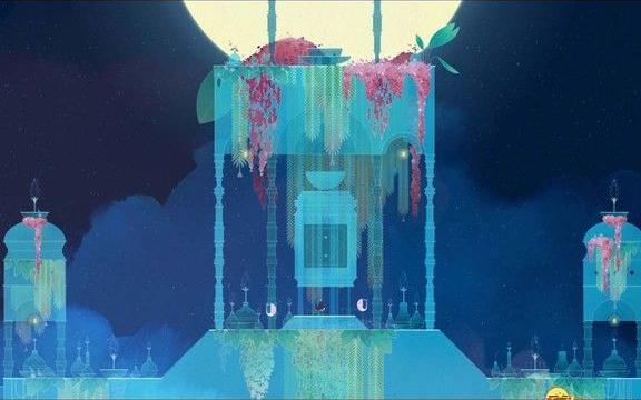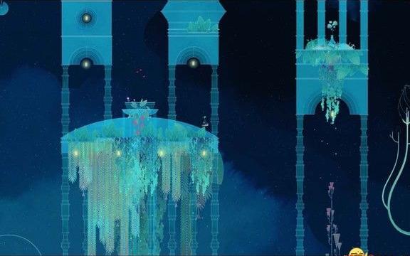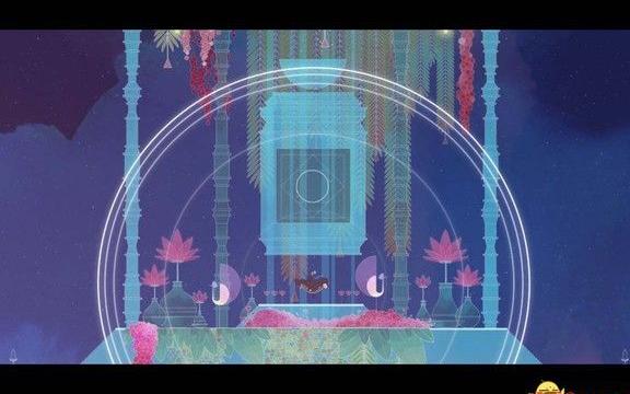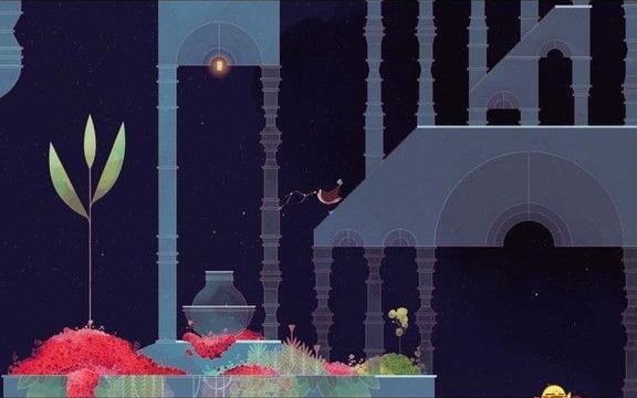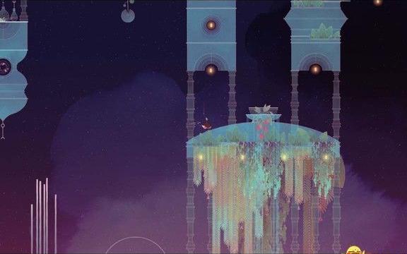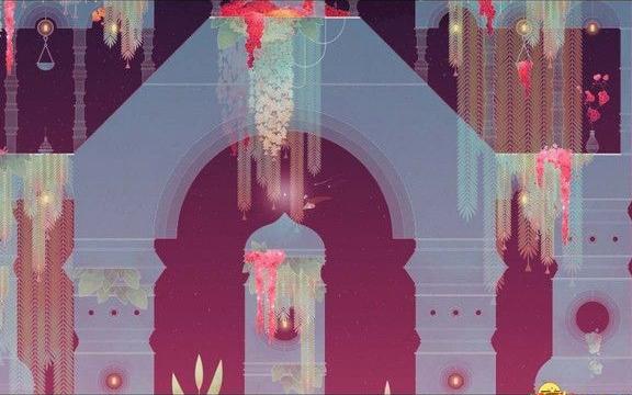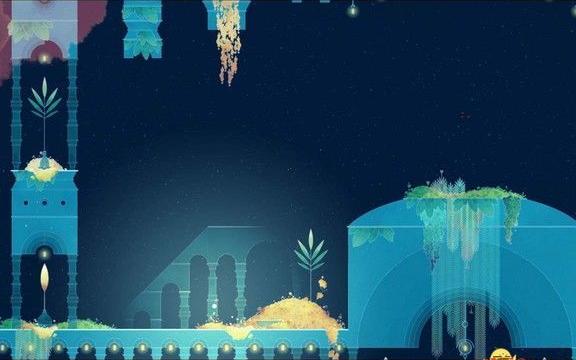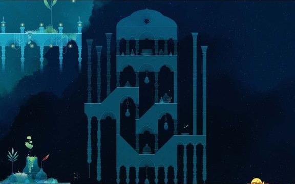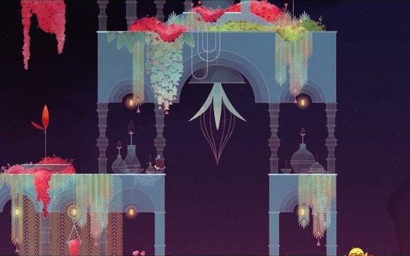 向左前行,寻找黄色花丛点亮房间,显现隐藏建筑。在建筑消失前抵达顶端,触发顶部的黄色花丛,随即飞升而起。