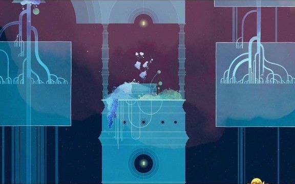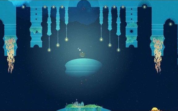 在水面上寻找花丛并引导它跟随,借助花丛飞越至右侧水域,最终即可获得宝石。
