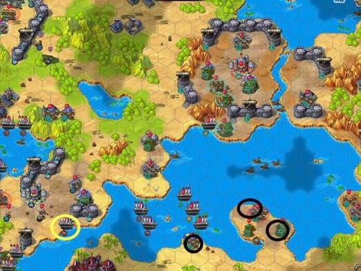 优先占领所有黑圈区域,持续生产机枪兵,合理卡位阻止电脑反扑并控制下海通道。