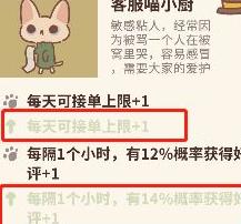 优先为客服喵小厨加薪,使用小鱼干即可提升其薪资。加薪后订单量将增加,获得好评的几率也随之上升。此外,喵小厨会定期掉落笑脸好评,在外卖餐厅中点击笑脸即可领取。
