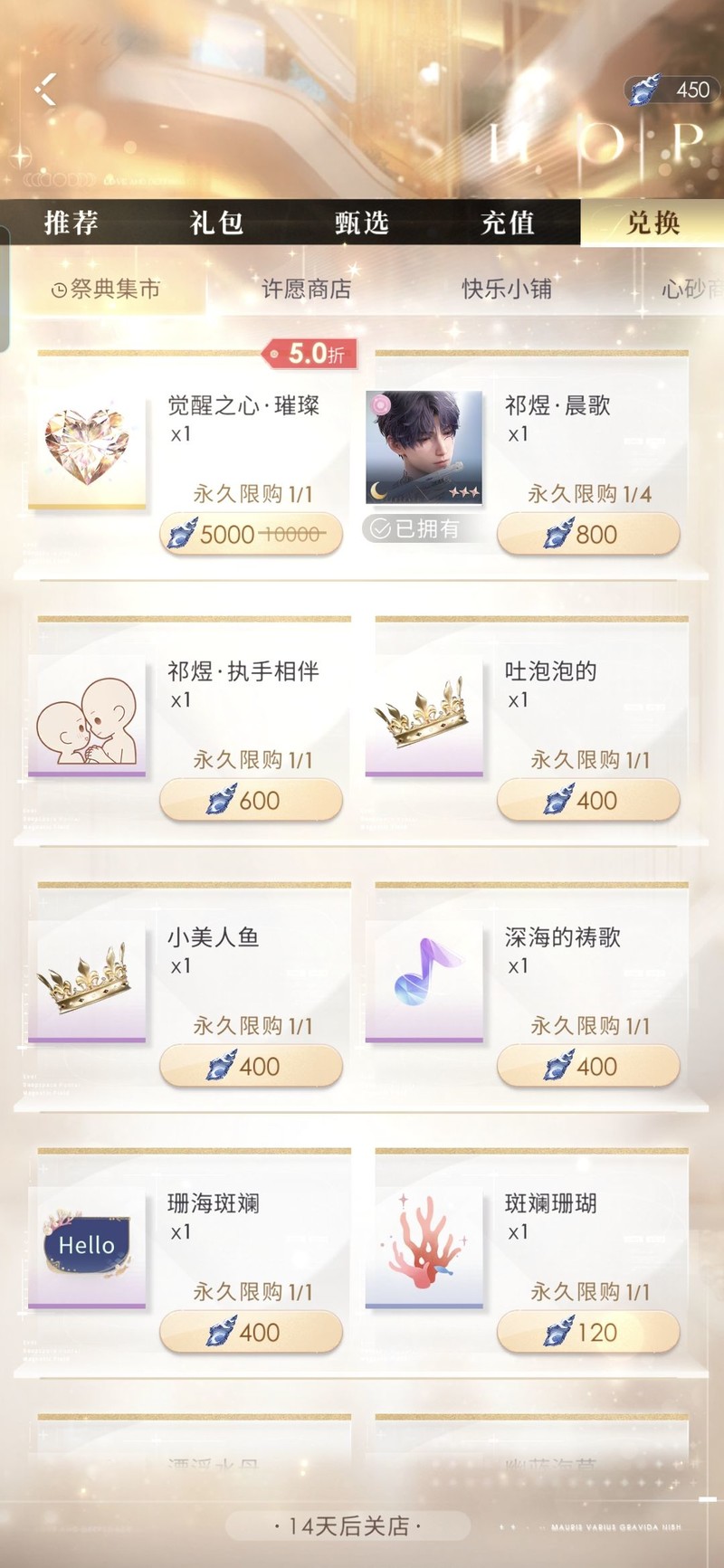 许愿商店每月更新五星卡,有值得兑换的,也有性价比不高的,建议先看攻略,理性选择,不必急于兑换。