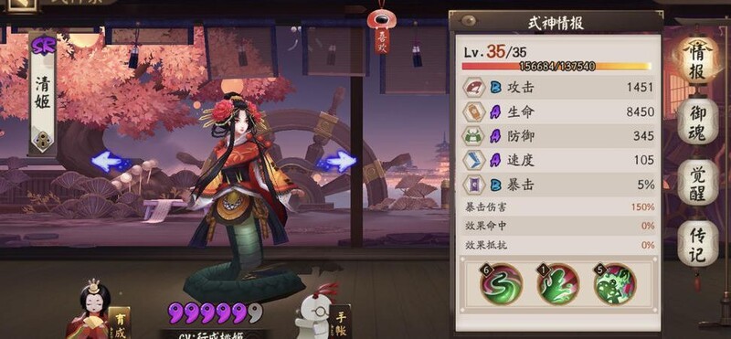 清姬建议111配置,优先满技能,御魂搭配雪幽魂四件套,若队伍缺土蜘蛛,可额外携带两件套以增强输出。