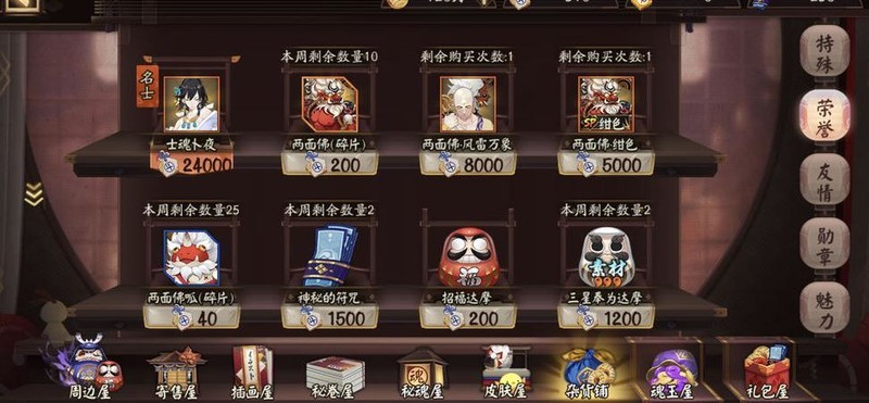 每周参与斗技可获积分,兑换荣誉商店SSR两面佛。