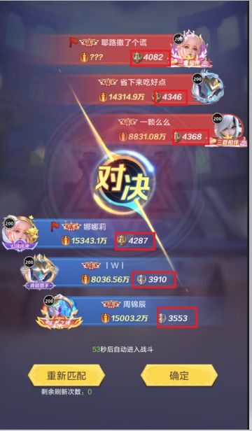 在战斗过程中,系统会为操作者提供5次随机匹配机会。匹配时需优先考虑双方战力对比,通常情况下,只有当己方至少有两名玩家战力高于对方时,才进行匹配确认。若匹配到的敌方战力明显强于己方,则需要重新匹配,具体操作所示。