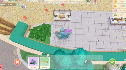 将先前制作的展台放置到位,后续即可直接陈列展品。点击装饰物可立即摆放,选中后放大能调整位置或回收。