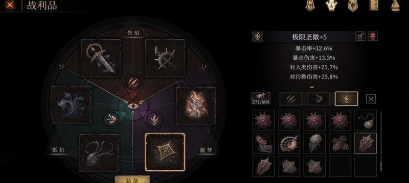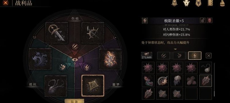 伤痕栏不加攻击效果有限,噩梦栏非极限圣辉强度不足,抵抗属性需根据装备权衡。
