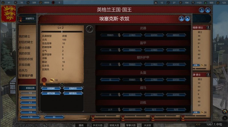 农奴数量决定了每位骑士出征时可携带的农奴人数。